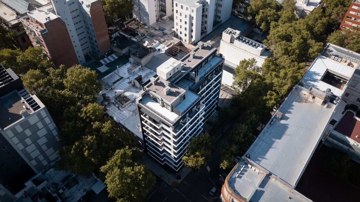 El edificio de 52 apartamentos de 1 y 2 dormitorios se desarrolla en un padrón angosto en esquina, y se resuelve con el objetivo de optimizar cada metro cuadrado. Dispone de 26 cocheras techadas, bicicletero en subsuelo y planta baja, y las unidades cuentan con terraza y gran ingreso de luz natural.